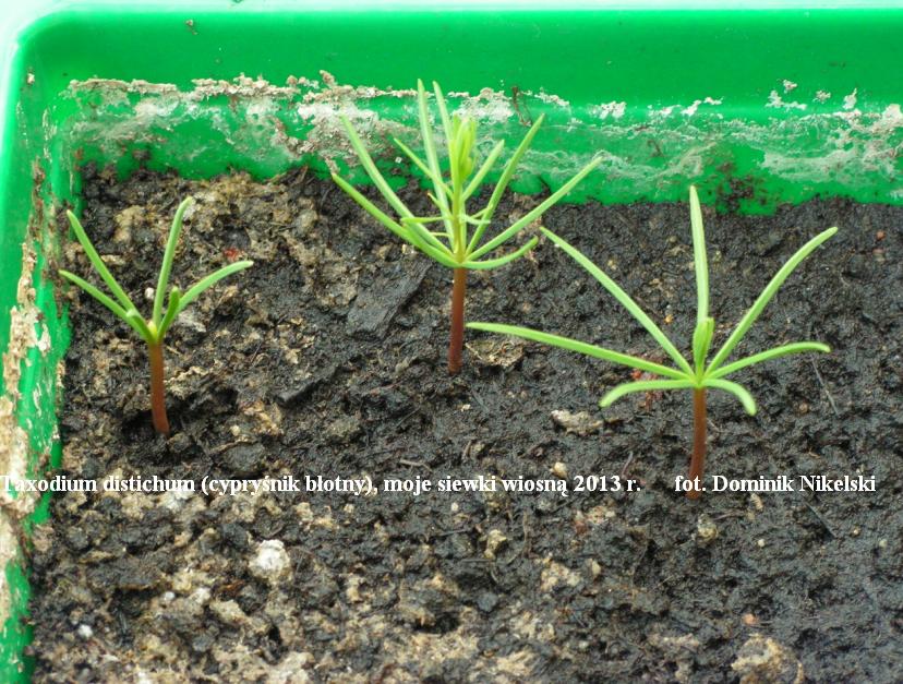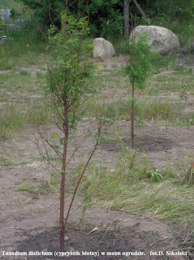 Cypryśnik na dobrze dobranym stanowisku (wilgotna, żyzna gleba) rośnie bardzo szybko. Po 5 latach uprawy powinien spokojnie osiągnąć ok 2m lub więcej. Drzewka są nieco wrażliwe na wiosenne przymrozki. Gdy liście wychylą się na 2-3 mm z pędów i pojawi się spadek temperatury poniżej -2 to takie liście (pąki) mogą być uszkadzane. Na szczęście drzewko ma sporo pąków ukrytych i w takim przypadku wypuszcza kolejne przyrosty. Nigdy nie próbowałem czy po drugim uszkodzeniu następuje po raz trzeci obudzenie ukrytych pąków, ale dla bezpieczeństwa drzewka dobrze jest je okryć na zimę, a osłonę zdjąć jak najpóźniej aby maksymalnie spowolnić wiosenny start. Unikniemy tym sposobem ewentualnego wczesnego uszkodzenia pierwszych startujacych paków.