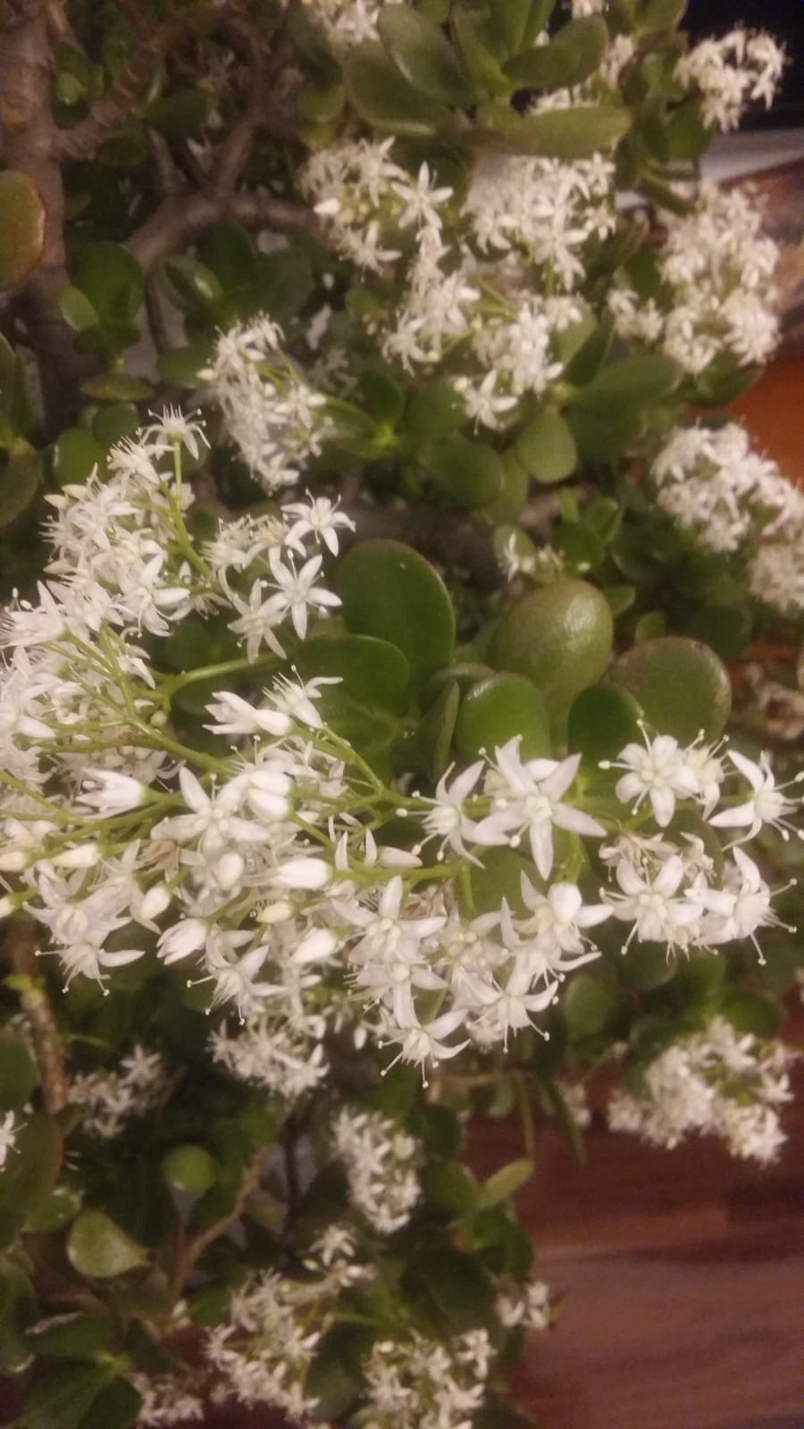 Przez cały grudzień do końca stycznia co roku kwitnie mój ulubieniec grubosz, zwany takżę drzewkiem szczęścia.